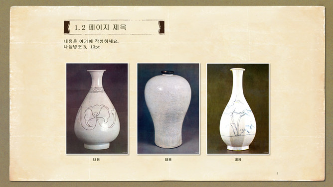 这是一份以线状古书效果设计的幻灯片模板,非常有创意和古典韵味,包含目录页、图片展示页,适合古玩文玩等的展示。