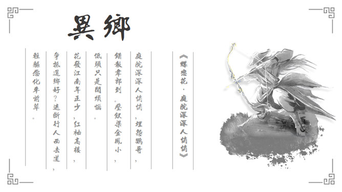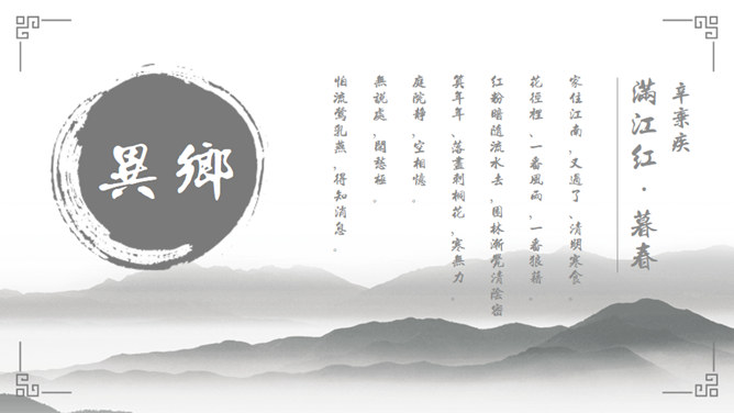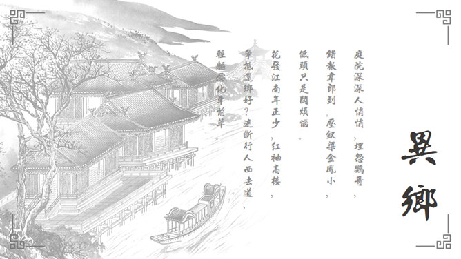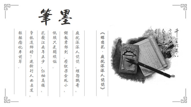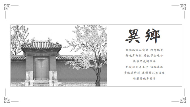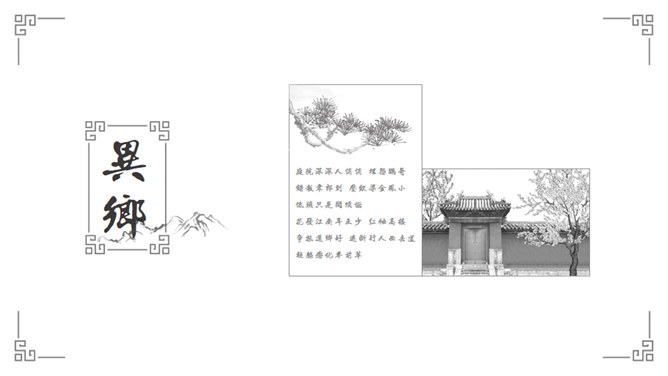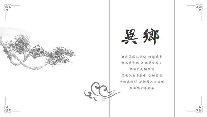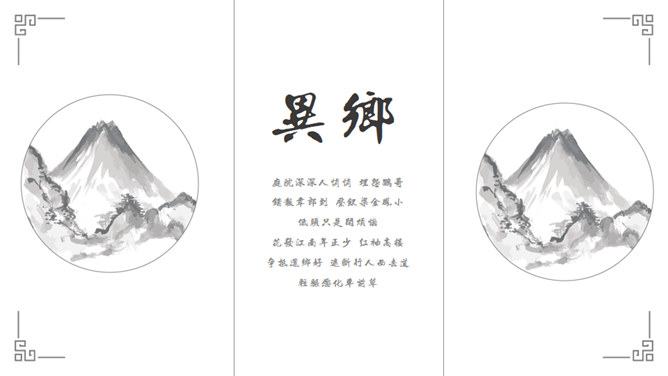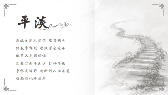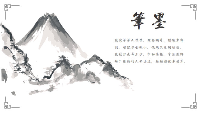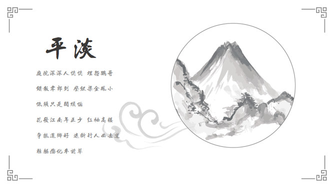 素雅简约水墨中国风PPT模板。一套简洁中国风幻灯片模板,素雅黑灰配色。建议安装字体: