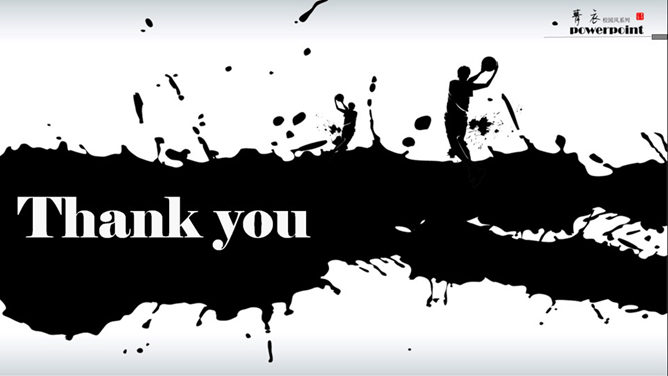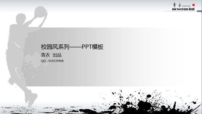 篮球剪影水墨风格PPT模板