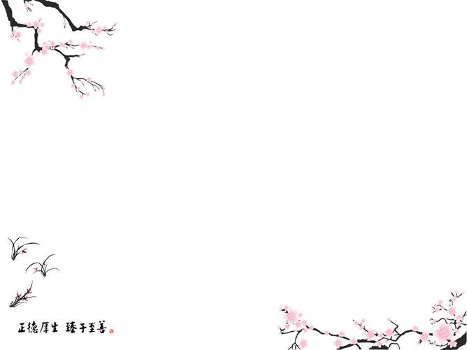 这是一组古典中国风PPT背景图片,白色背景,粉色梅花,显得非常淡雅简约,自古以来,人们都赞美它的傲雪精神。