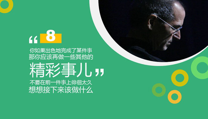 这是一份介绍乔布斯经典语录的幻灯片,让我们一起聆听这位有着传奇色彩的大神的教诲,每一句都非常励志。