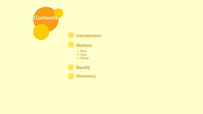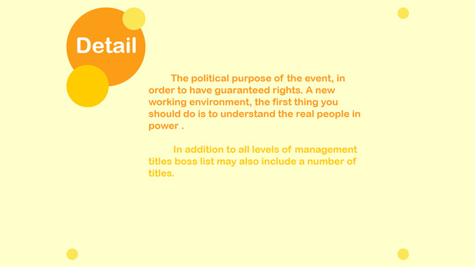 这是一份橙黄色背景的通用PPT模板,共5页,圆形圆圈装饰,风格简洁,通用性强,用途广泛。