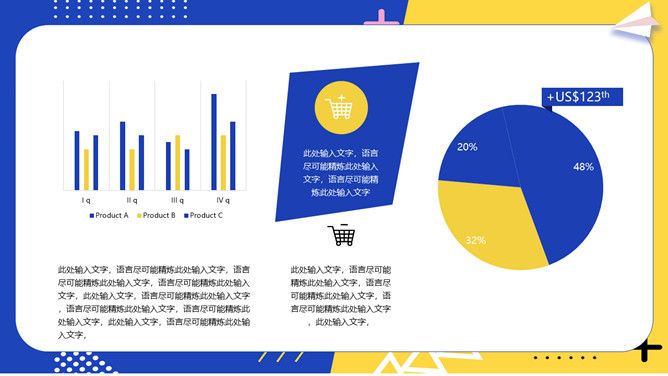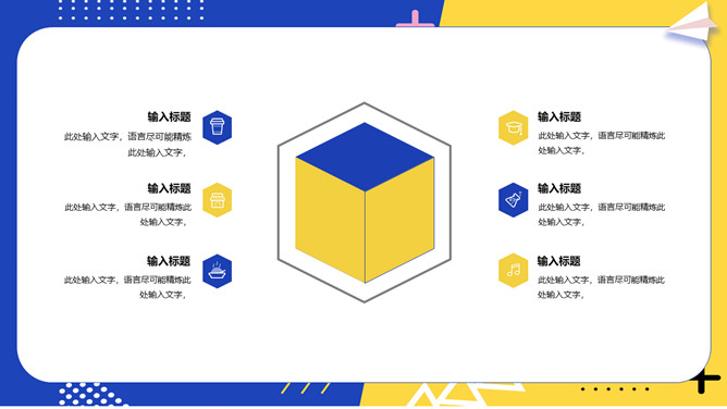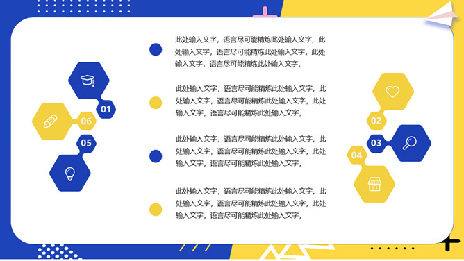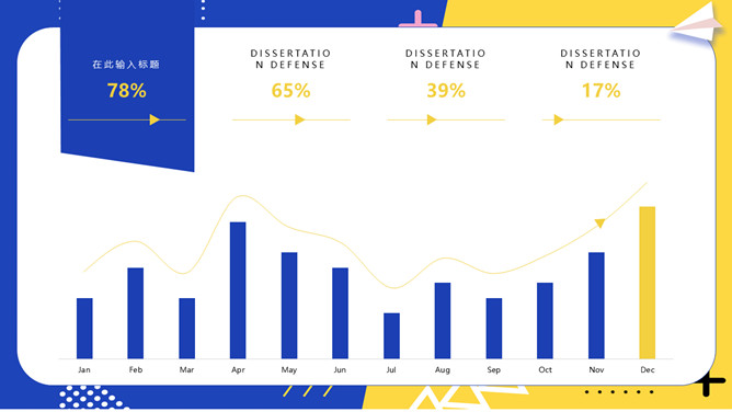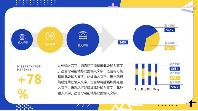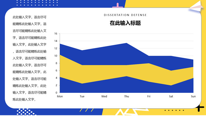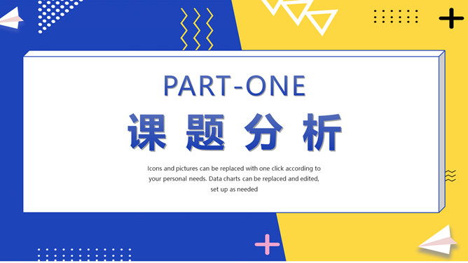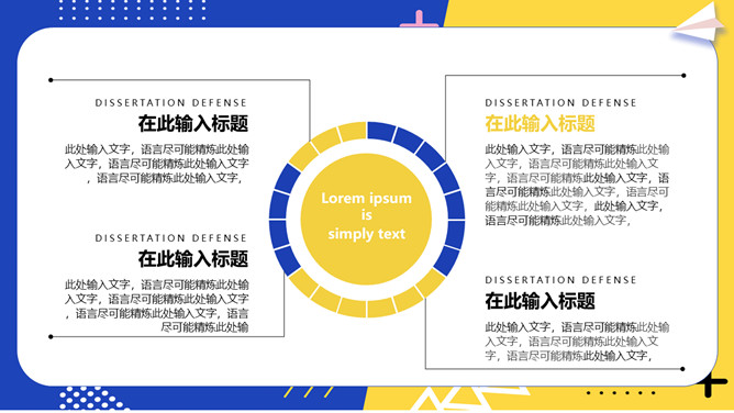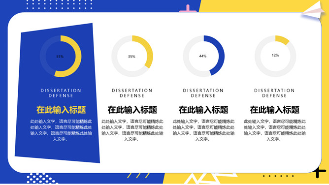 撞色孟菲斯毕业论文答辩PPT模板。一套毕业设计答辩幻灯片模板,活力黄蓝撞色配色,时尚孟菲斯风格设计。