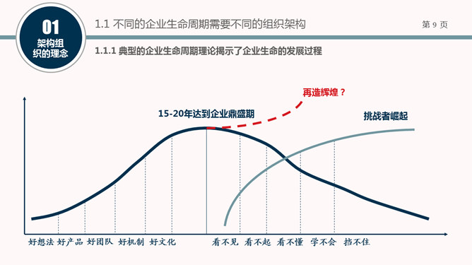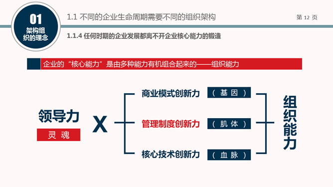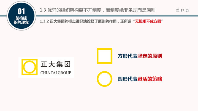 一套精美实用的组织结构架构设计培训PPT课件模板。包括架构组织的理念、架构组织的方法和案例分享三部分。