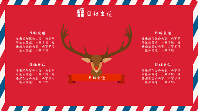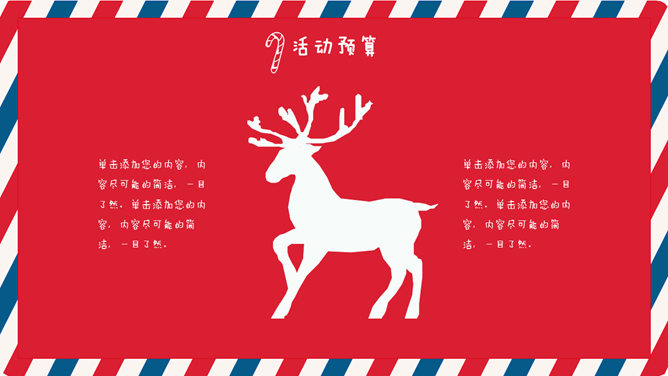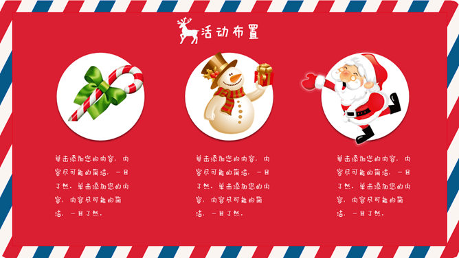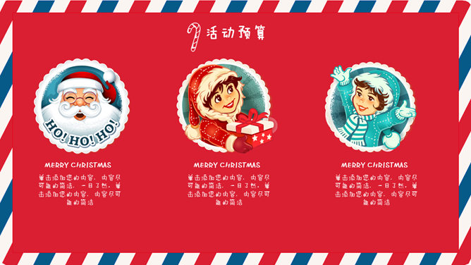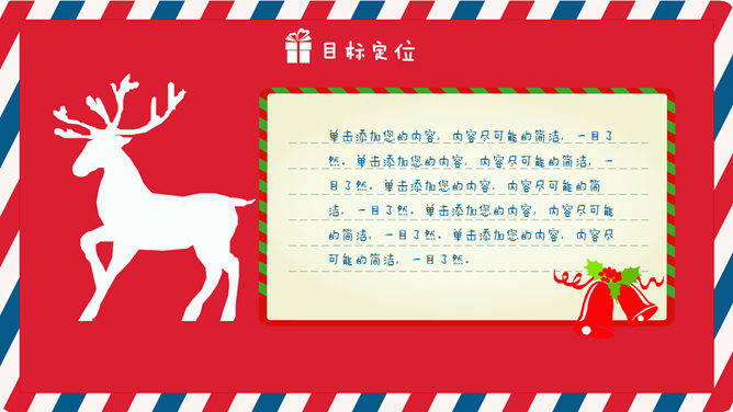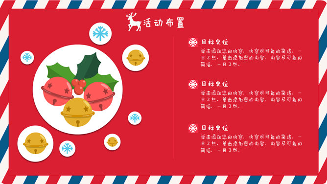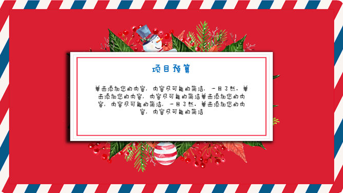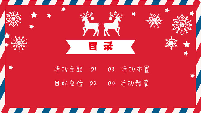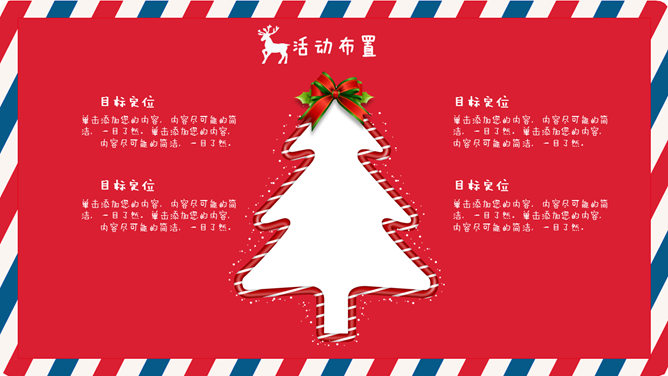 这是一个圣诞节主题的幻灯片模板,喜庆红色的主色调,经过艺术设计的圣诞树、星星、雪花装饰,适合庆祝圣诞使用。