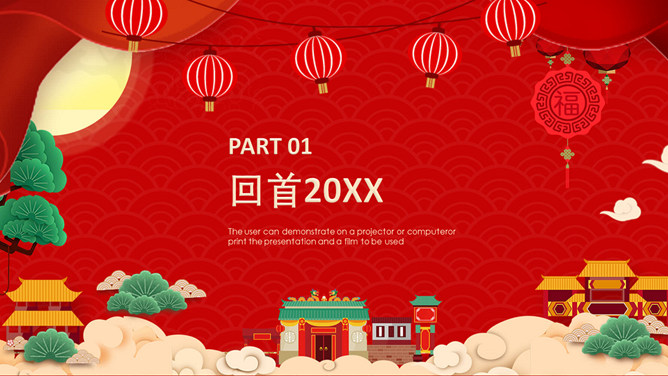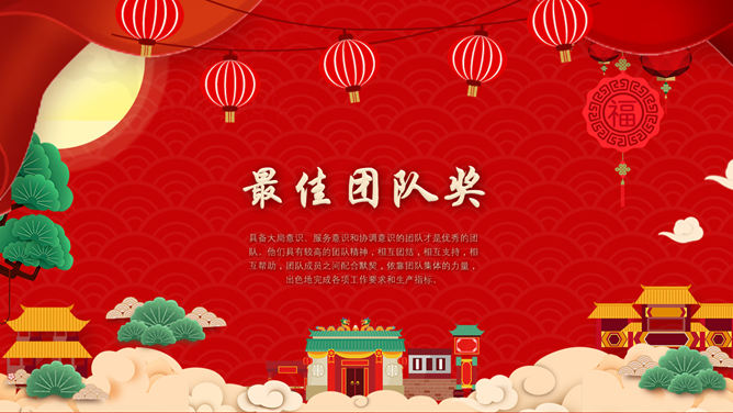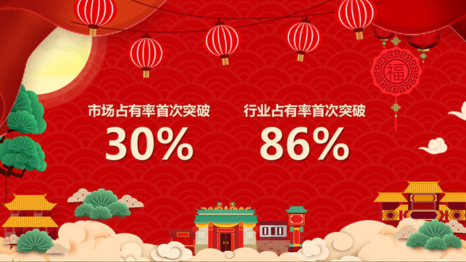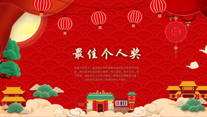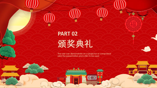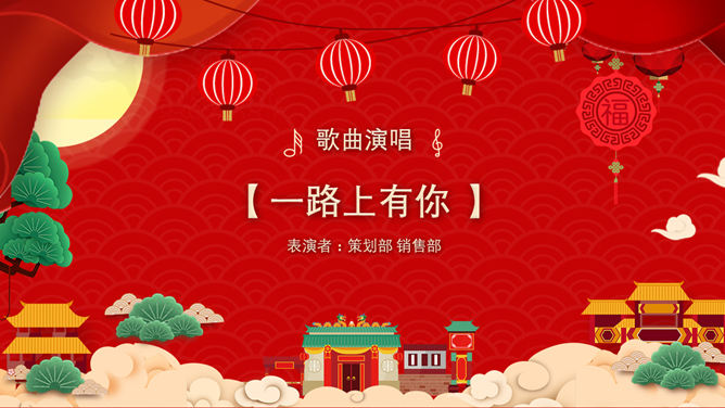 这是一份红色喜庆的公司年会幻灯片模板,带有欢快的背景音乐,漂亮的动态效果,适合年会活动使用,非常实用。