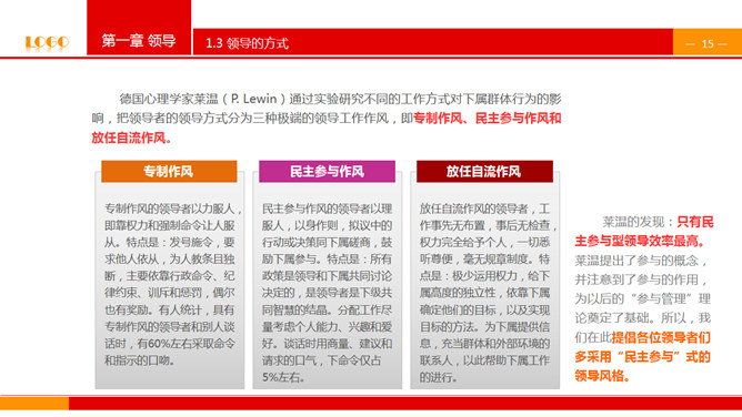 又一份来自布衣公子的关于领导和领导力的PPT培训课件,内容非常丰富和专业,设计也非常漂亮,内外兼修的课件。
