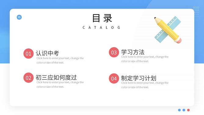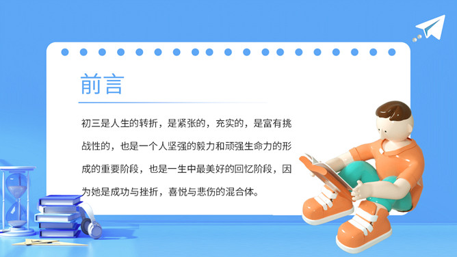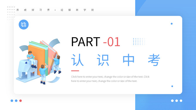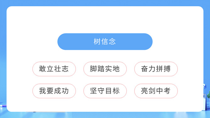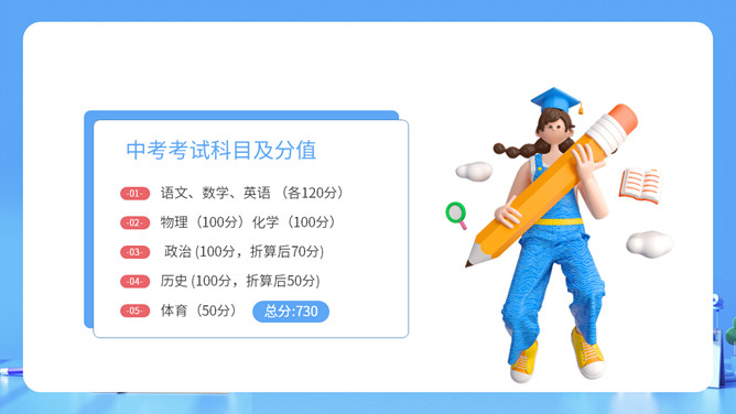 初三毕业班开学第一课PPT模板。一套初三毕业班励志主题班会,内容包括认识中考、初三应如何度过、学习方法、制定学习计划。