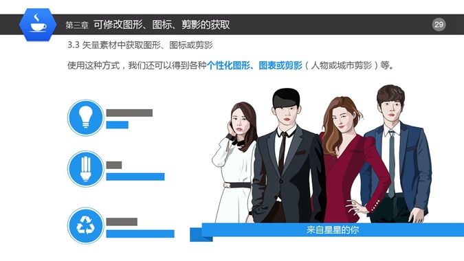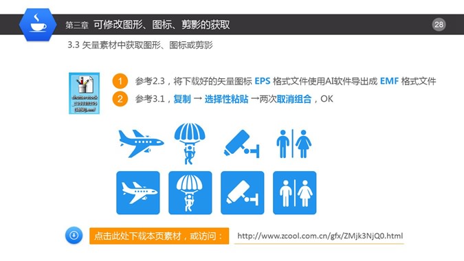 来自布衣公子的关于PPT设计辅助技能的教程。1、有关图片的辅助技巧。2、PNG图片的获取。3、可修改图形、图标、剪影的获取。4、素材的搜集与整理。很实用的教程。