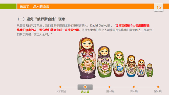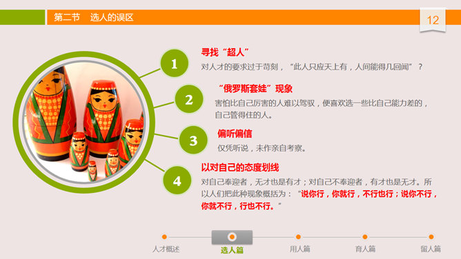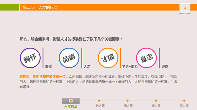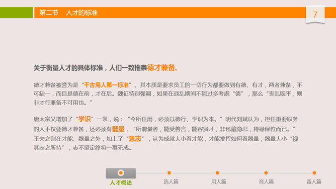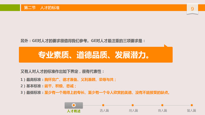 人才选用育留培训PPT课件。布衣公子中高层领导培训系列课件之人才选用预留,内容丰富,非常实用,包括人才概述、选人篇、用人篇、育人篇和留人篇。