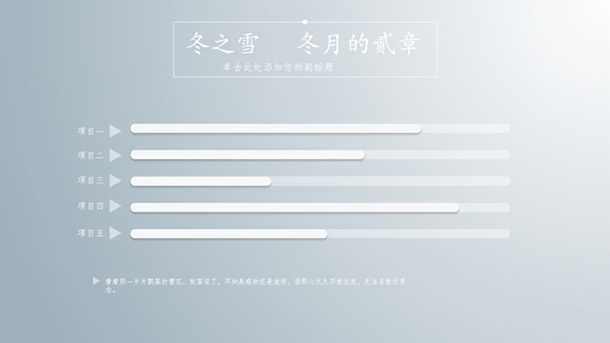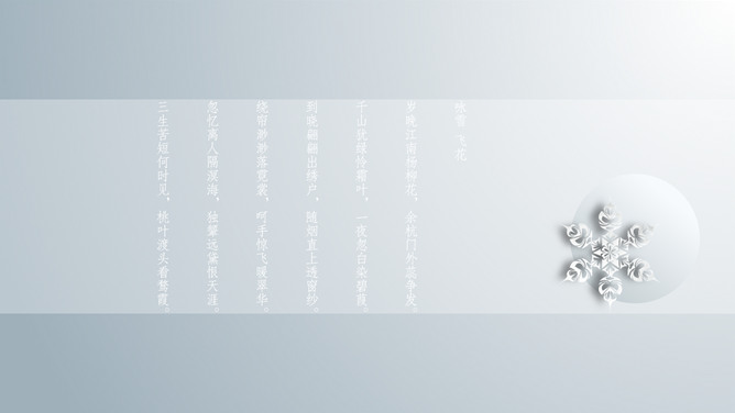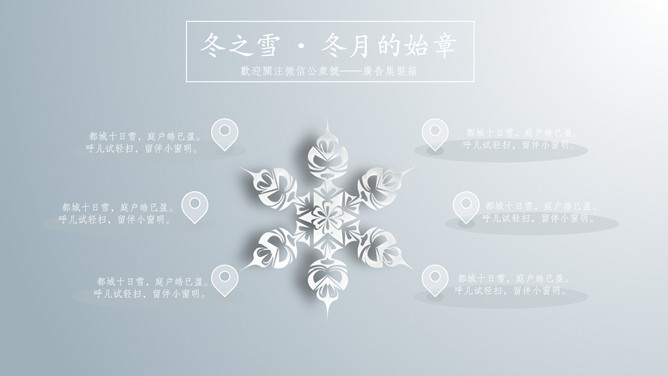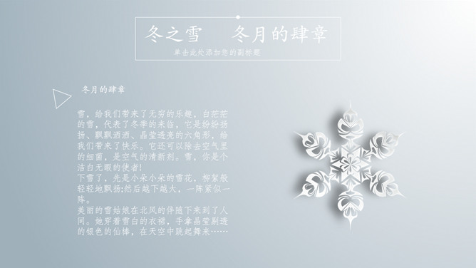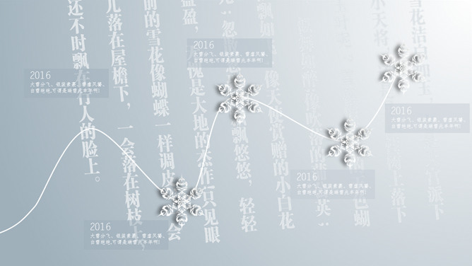 冬季冬天动态雪花PPT模板。一套唯美雪花主题幻灯片模板,冬天冬季银装素裹效果设计,好看的动态效果。使用字体: