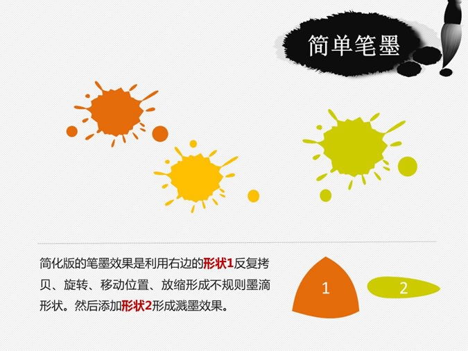 这是一份教你如何制作手绘水墨效果PPT教程:通过形状复合、柔化边缘、内部阴影达到笔墨效果,很实用,请下载学习。