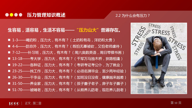 来自布衣公子的压力管理培训PPT课件。4个部分:1、为什么需要压力管理。2、压力管理知识概述。3、如何进行压力管理。4.组织压力管理概述。
