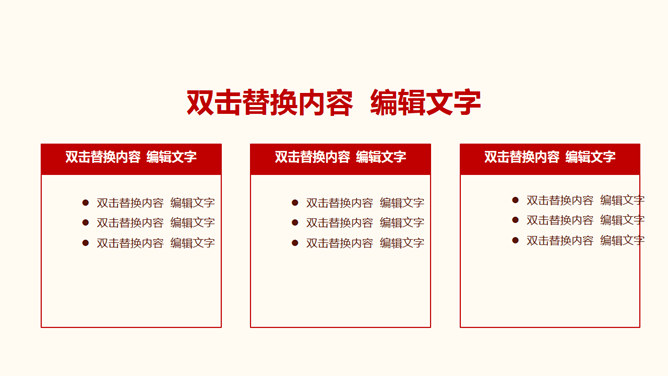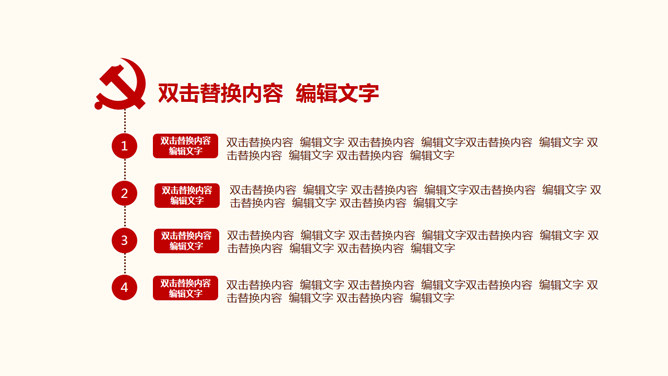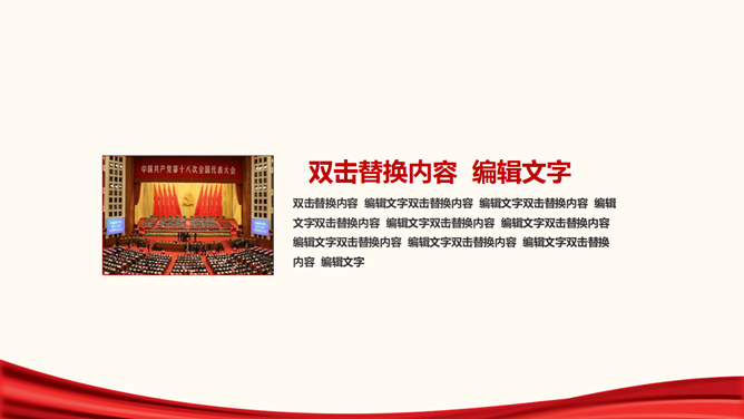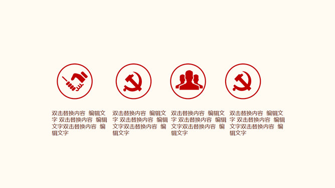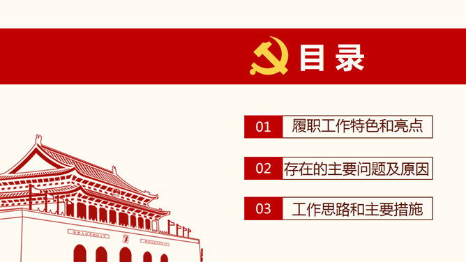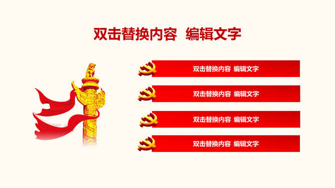 ,红色主色调,封面页以国旗党徽为背景元素,包含目录页和内容页。