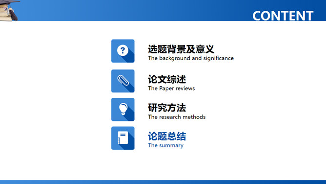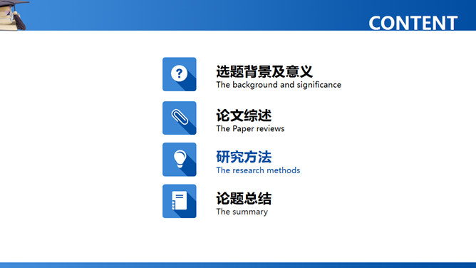 学位帽毕业设计答辩PPT模板。一套简约风格毕业设计论文答辩幻灯片模板,以书籍和学位帽为封面图片,简洁大方。