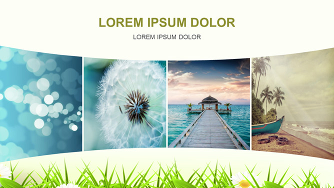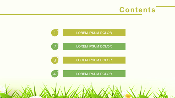清新卡通大树草地PPT模板。一套自然清新卡通幻灯片模板,绿树和开着小花的草地背景,唯美自然绿意盎然。