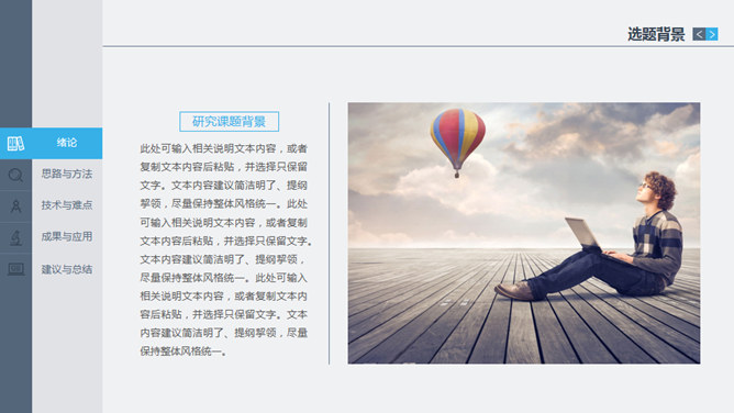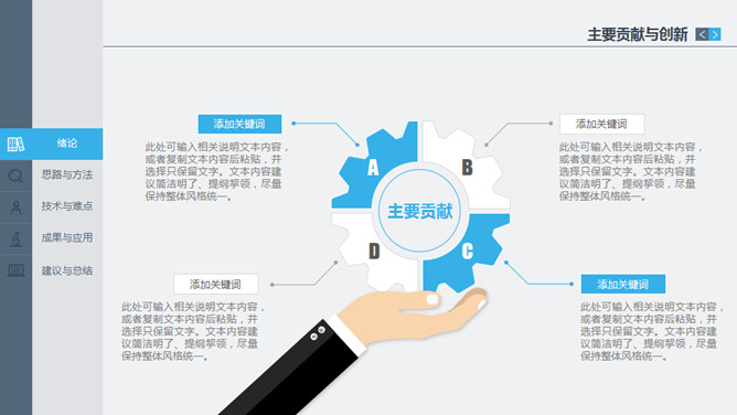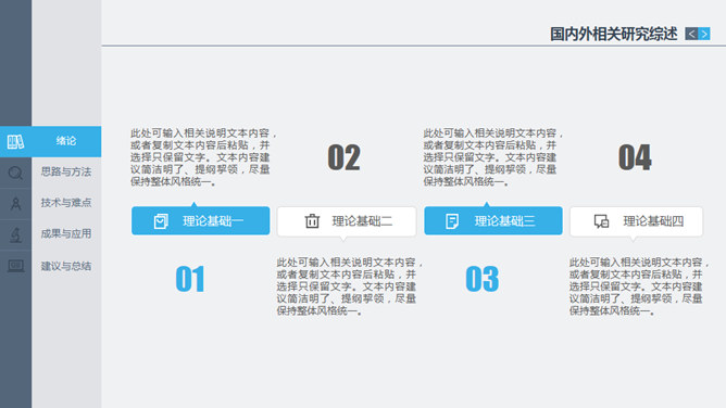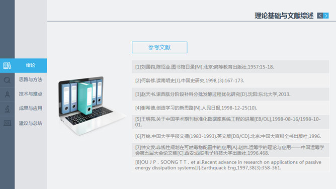 大方稳重动态毕业答辩PPT模板。一套毕业设计答辩幻灯片模板,大气稳重风格,侧边栏目录导航,动态演示播放。
