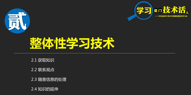 《如何高效学习》读书笔记PPT。看作者如何一年完成MIT(麻省理工学院)4年33门课程的学习方法。使用字体:方正正大黑简体、方正粗谭黑简体、方正综艺简体、张海山锐线体2.0、华康俪金黑W8、方正特雅宋_GBK。