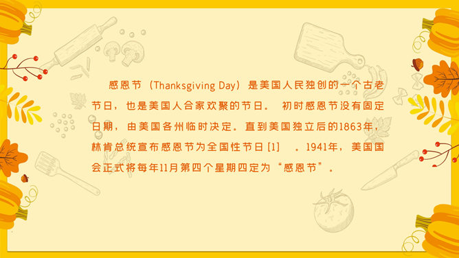 美国感恩节介绍PPT模板