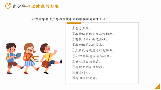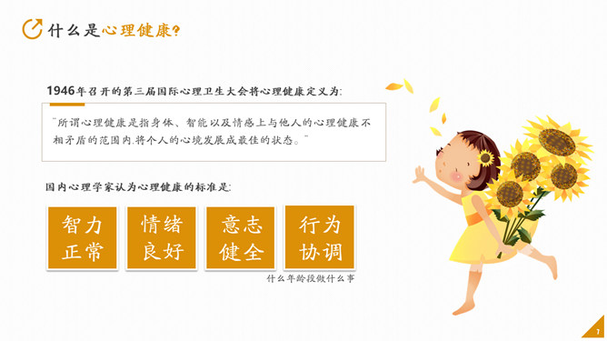 中小学心理健康应知应会PPT模板。内容包括什么是心理健康、中小学生心理健康的标准、增进心理健康的途径。