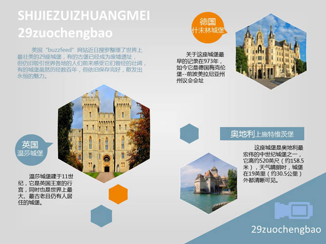 美国“buzzfeed”网站搜罗整理了世界上最壮美的29座城堡,有的古堡已经成为废墟遗址,但仍旧吸引世界各地的人们前来感受它们曾经的壮阔,有的城堡虽然历经数百年,但依旧保存完好,散发出永恒的魅力。