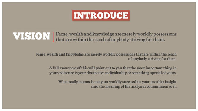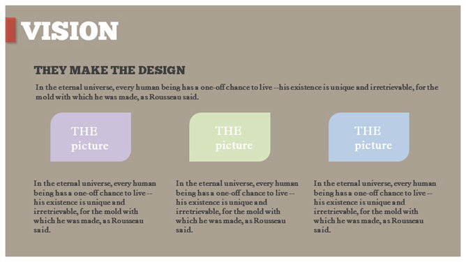 一份欧美复古风格的幻灯片模板,采用暗红色和暗棕色的复古色调,设计简约,共15页,包含多种类型的内页。建议安装字体: