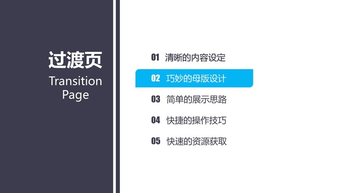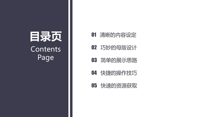 想以最快的速度制作出老板满意的PPT吗?布衣公子来教你。目录:清晰的内容设定、巧妙的母版设计、简单的展示思路、快捷操作技巧、快速的素材获取。