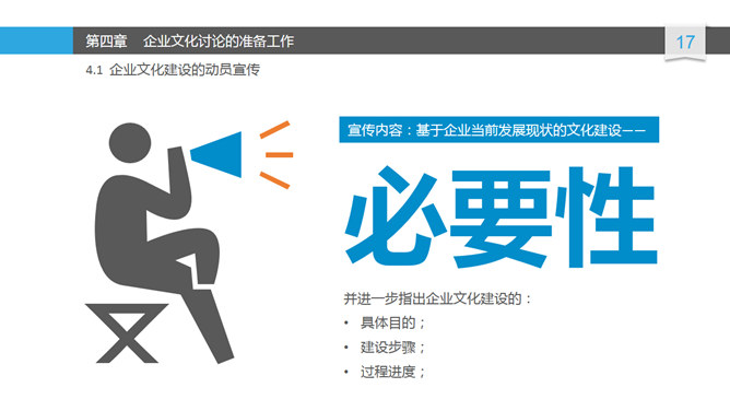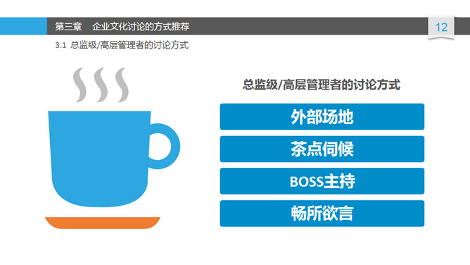 布衣公子的关于企业文化建设讨论PPT,设计的相当精美。内容包括:企业文化讨论的目的及作用、问题建议、方式推荐、准备工作、输出内容、讨论结果的整合宣传。