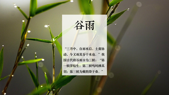 好看配图二十四节气PPT模板。一套而是节气主题幻灯片模板,每个节气配合应景的图片,非常精美。