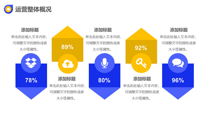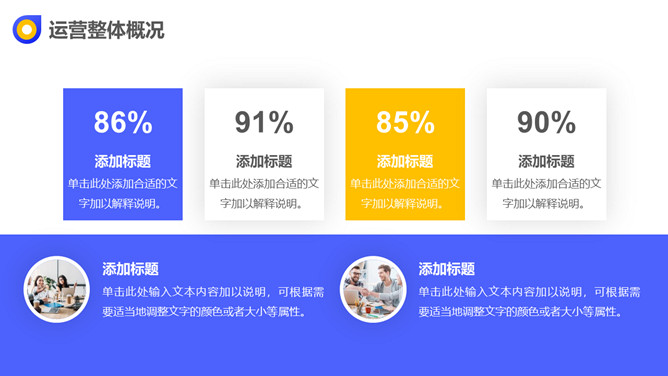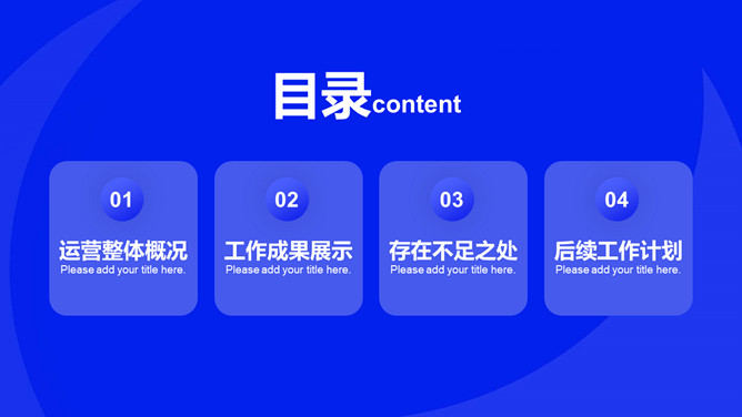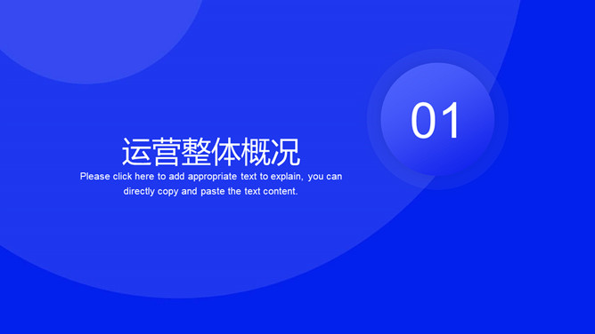 销售运营复盘总结PPT模板。包括运营整体概况、工作成果展示、存在不足之处、后续工作计划等内容。