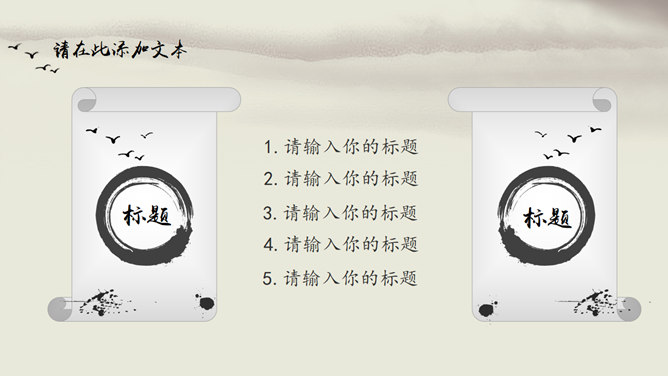 中国风毕业论文答辩PPT模板。一套精美古典中国风毕业设计论文答辩幻灯片模板,毛笔水墨效果设计,注意安装字体:禹卫书法行书简体、钟齐流江毛笔草体。