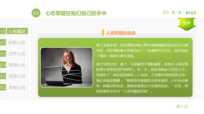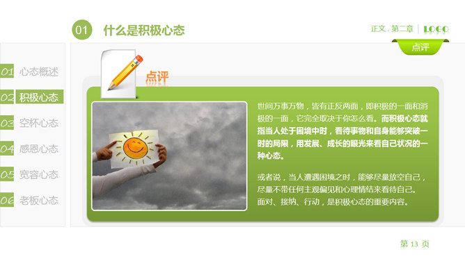 布衣公子的员工在职培训系列之员工心态培训PPT课件。心态就是人们对待客观事物的看法、观点,心态决定命运。