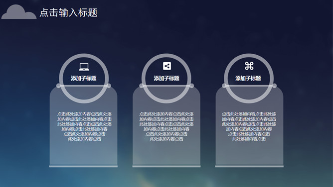 一份精美的IOS风格幻灯片模板,蓝色背景,风格简约,包含多种类型内页,更多同类模板请参阅: