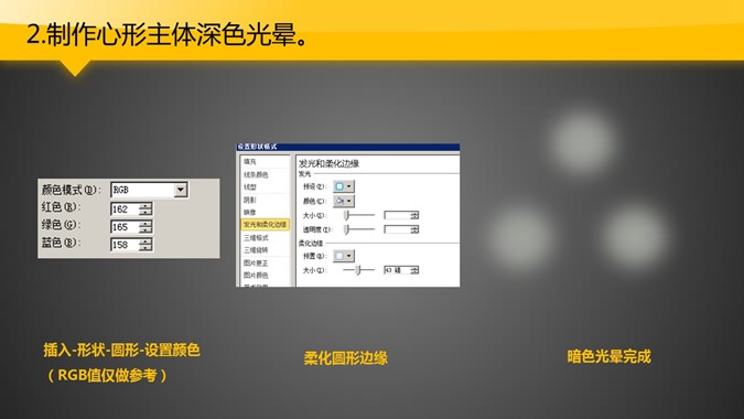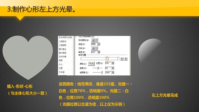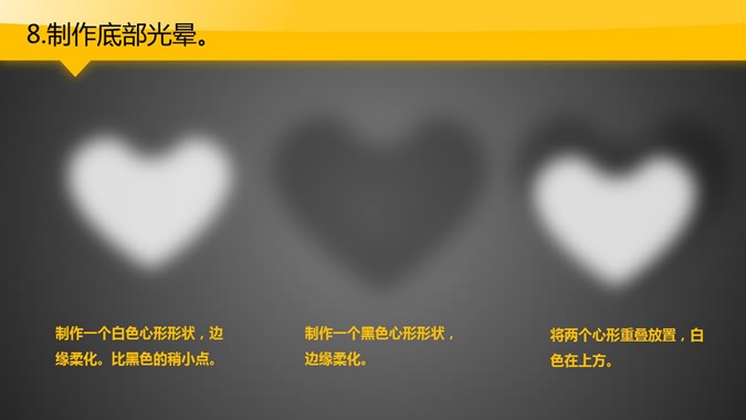 一份来自大猫菲菲的PPT教程,教你制作质感透亮心形,通过主体形状和光晕效果叠加,达到质感心形的效果。