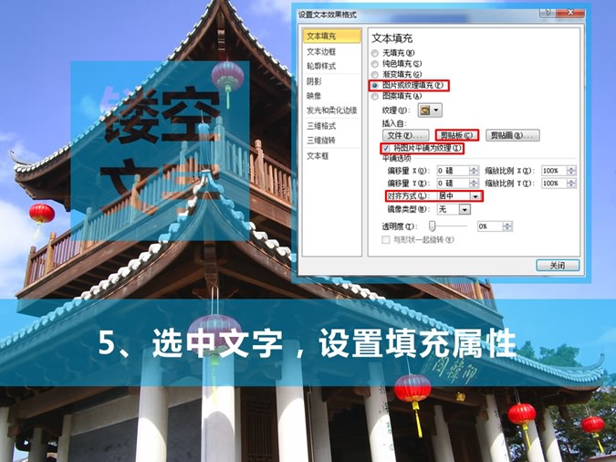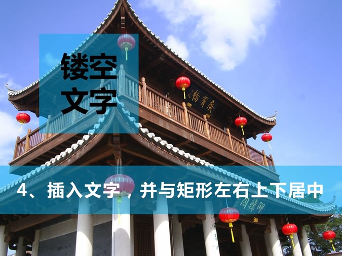 1、插入图片,复制一张对齐页面。2、插入矩形,用来定位镂空字位置。3、裁剪一图片与矩形等大,并压缩复制。4、插入文字,并与矩形左右上下居中。5、选中文字,设置填充属性。6、选中文本框-文字效果-转化-正方形。