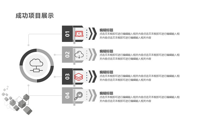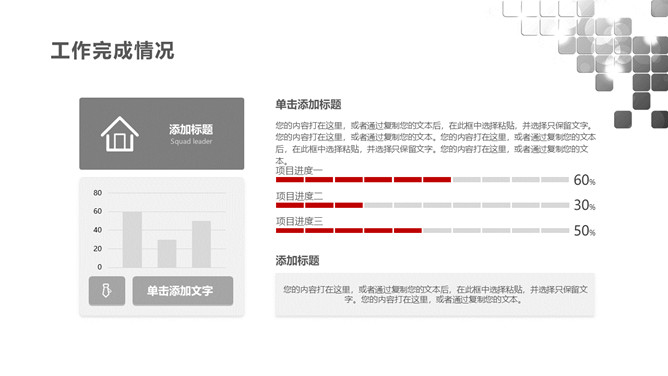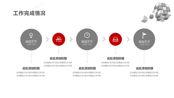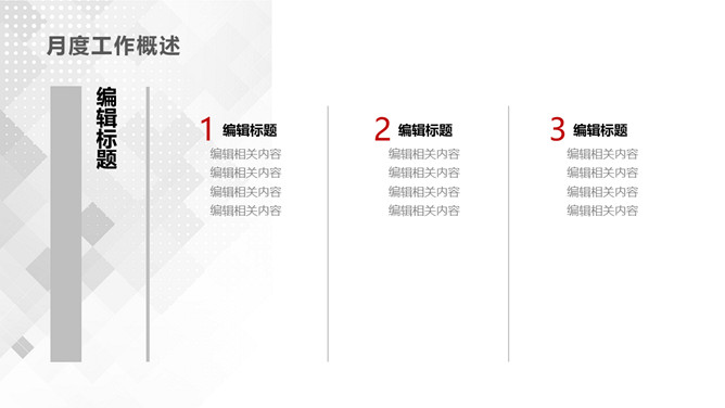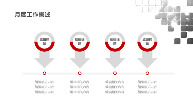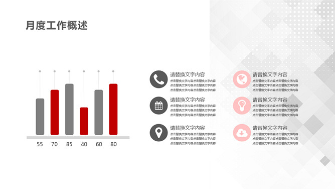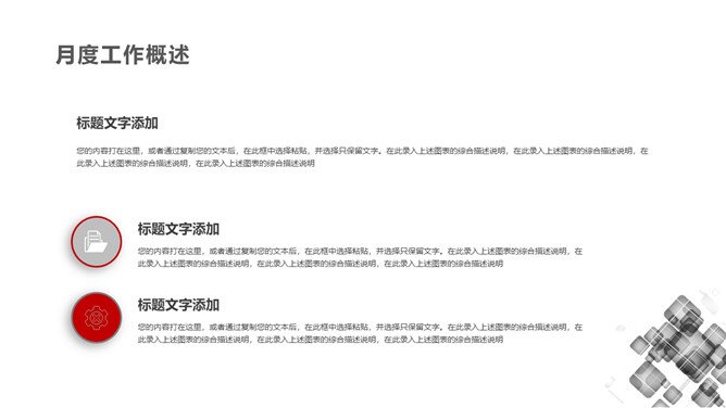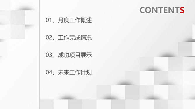 立体感月度工作总结计划PPT模板。一套月工作总结计划汇报幻灯片模板,立体凹凸感效果装饰,大气黑红配色。