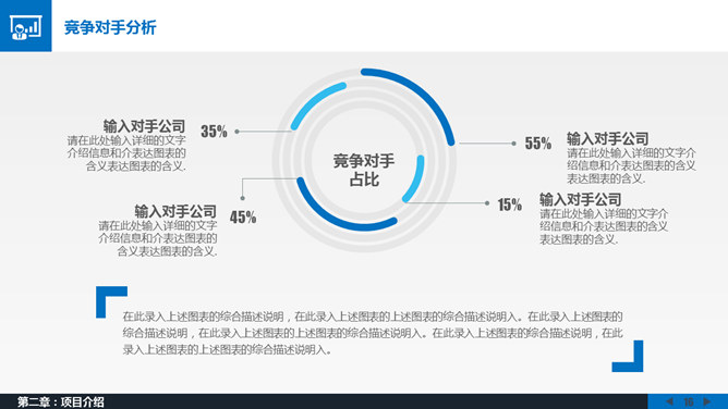 大气商务动态公司介绍PPT模板。一套大气商务风格幻灯片模板,页面丰富,适合公司简介、产品介绍、企业宣传等。
