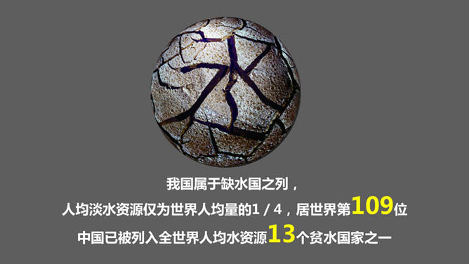 一份倡导宣传节约用水的PPT作品。联合国研究报告指出,全球现有80个国家水源不足,20亿人的饮水得不到保障,12亿人面临中度到高度缺水的压力。中国已被列入全世界人均水资源13个贫水国家之一。