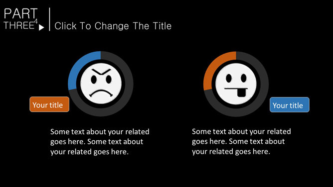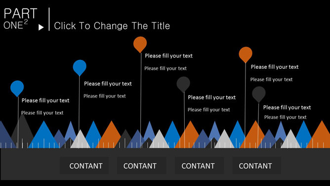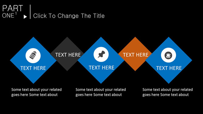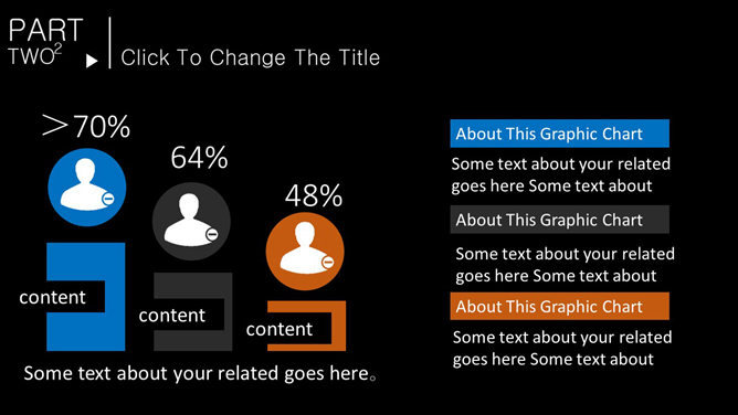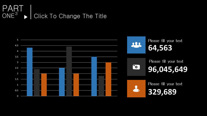 一份色彩搭配很大胆的幻灯片模板,采用纯黑色背景,蓝色和黄色主色调,设计简约,共20页,图形图表页面非常丰富。