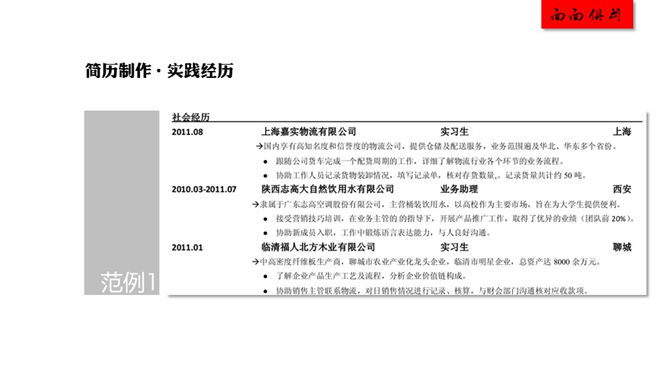 简历中实践经历的写法PPT