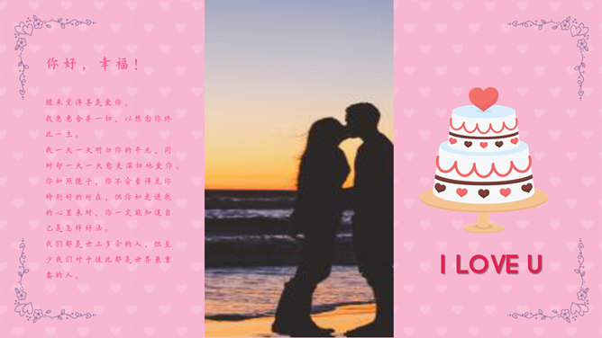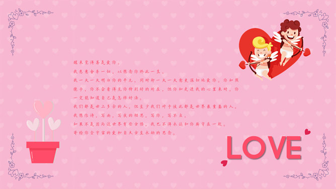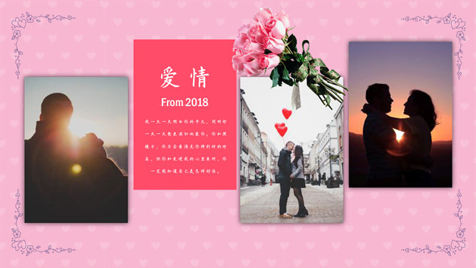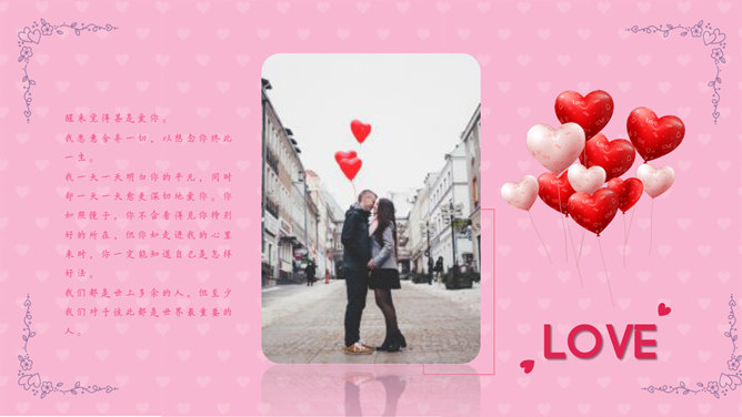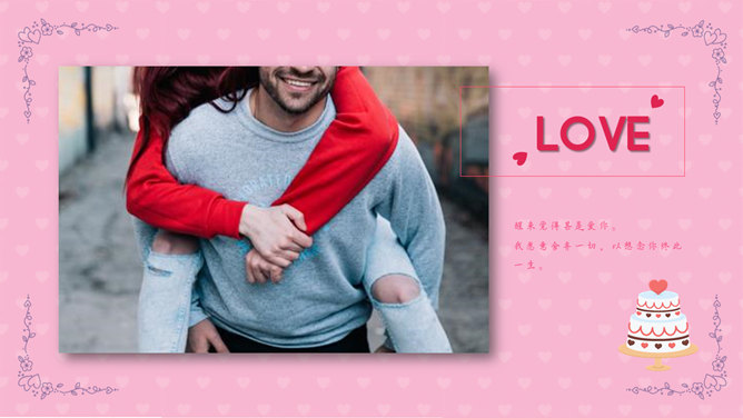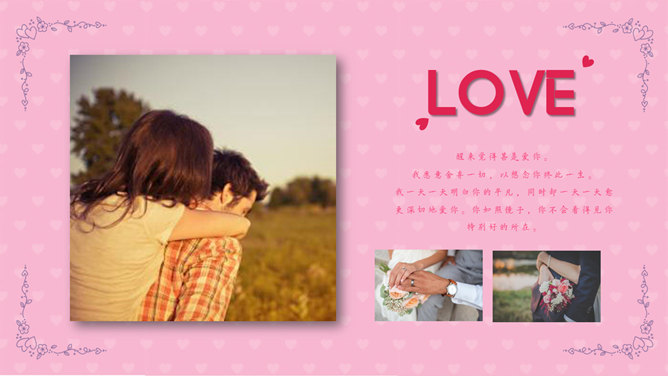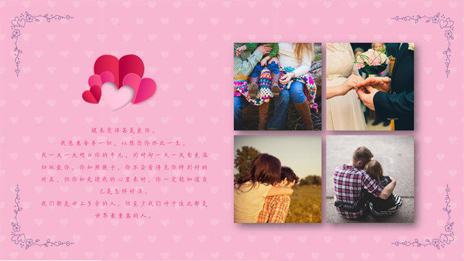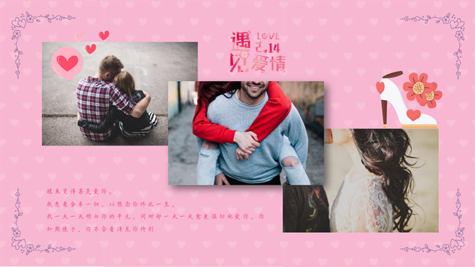 粉色爱心情人节PPT模板。一套情人节主题幻灯片模板,粉色爱心封面,多种图文排版。建议安装字体: