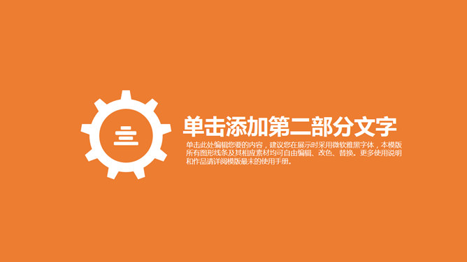 橙色齿轮工作总结汇报PPT模板。一套工作总结汇报幻灯片模板,橙色底色,齿轮主要元素,扁平化设计风格。