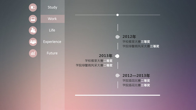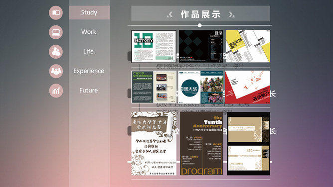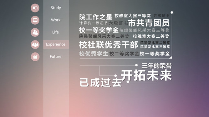 一份设计精美的竞选优秀大学生演讲PPT,IOS的设计风格,动态演示效果,包括学习成绩、获得过的奖项介绍。