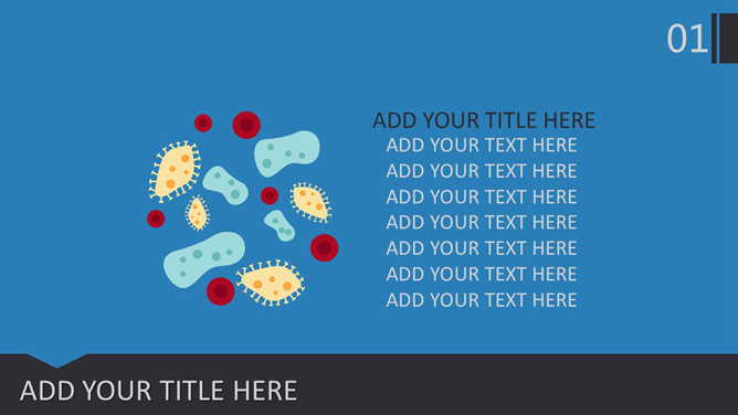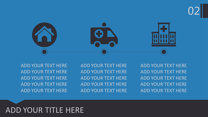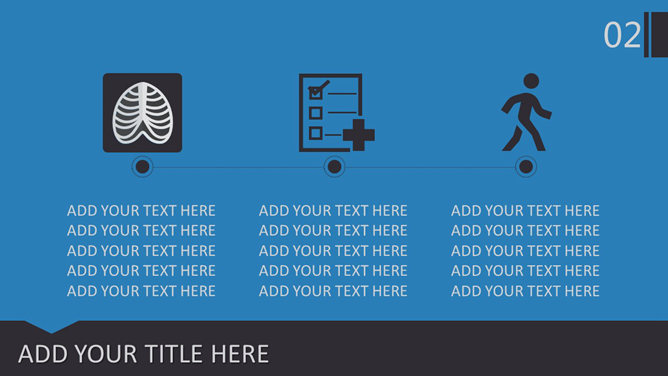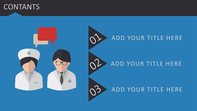 一份精美医学医疗医药主题的幻灯片模板,蓝色主色调,扁平化的设计,动态播放效果,可用于制作医院总结汇报PPT。