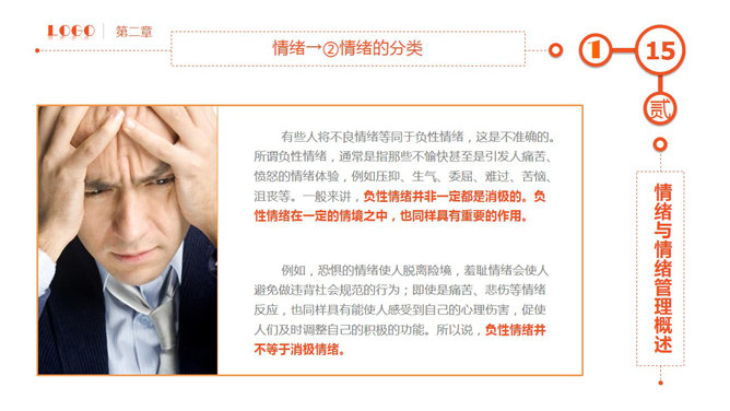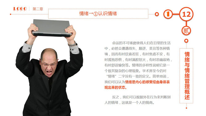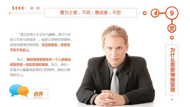 精品情绪管理PPT课件。布衣公子员工在职培训PPT课件系列之情绪管理ppt指南,共56页,内容专业丰富,包括为什么需要管理情绪、情绪与情绪管理概述、如何进行情绪管理、情商知识概述几部分。更多请参阅:PPT培训课件。