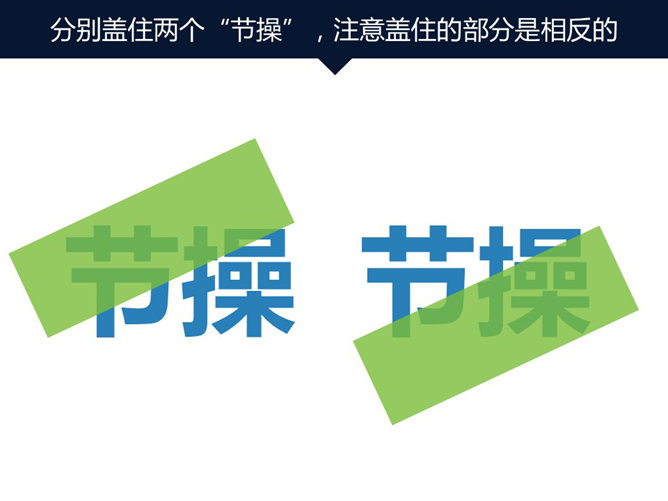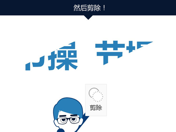 PPT设计师@嘉文钱“壹技巧拯救地球系列”PPT教程第六弹:用文字转换形状术加剪除切文字。以“节操”为例,将其转换成形状,并多复制一个,新建两个倾斜度相同或相近的矩形,分别盖住两个“节操”,注意盖住的部分是相反的,然后剪除,最后倾斜其中一个并放在一起就完成了。