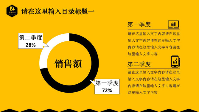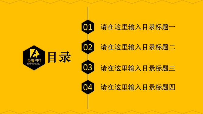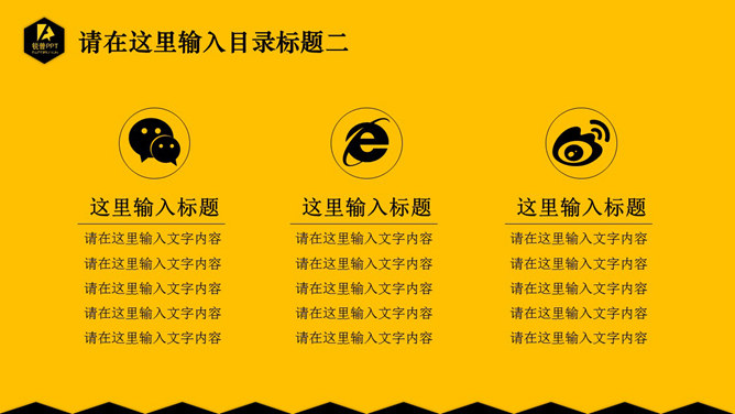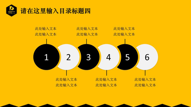 简洁黑黄配色多用途PPT模板。黄色背景,黑色文字及元素,亮眼醒目很能抓住观众眼球,动态无缝滚动切换,适合和人工作总结汇报、商务场合等多种用途。建议安装字体: