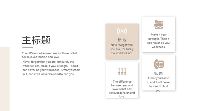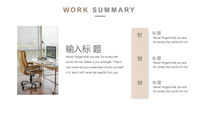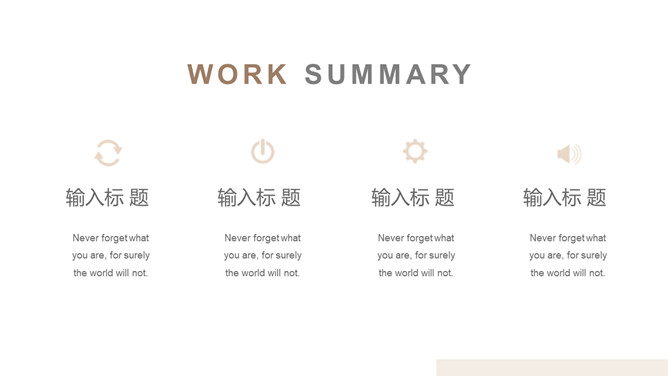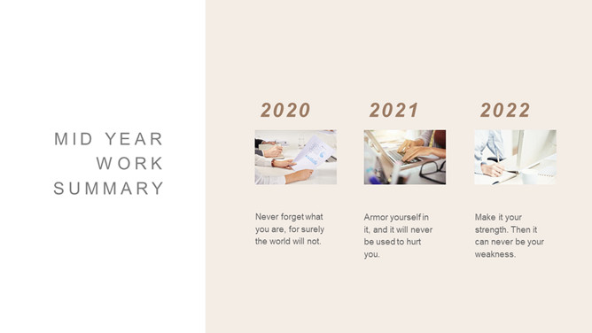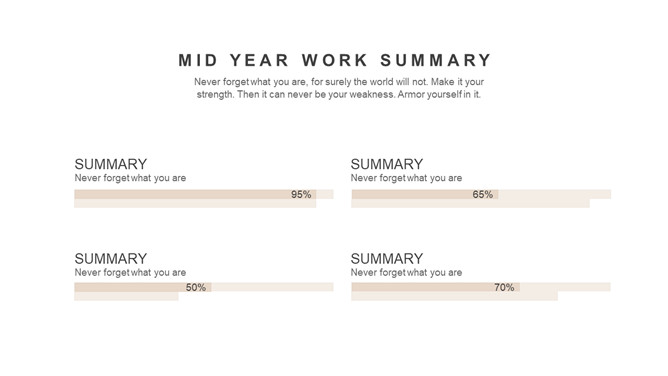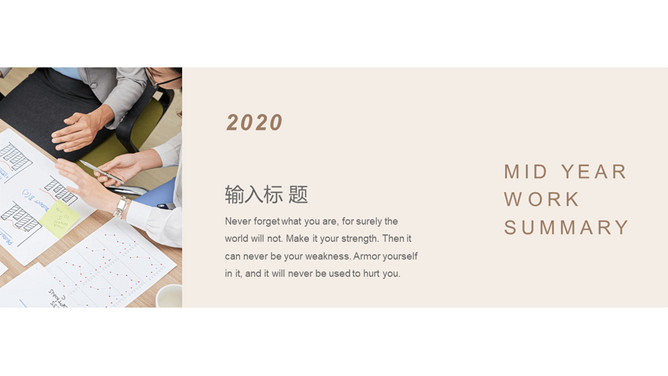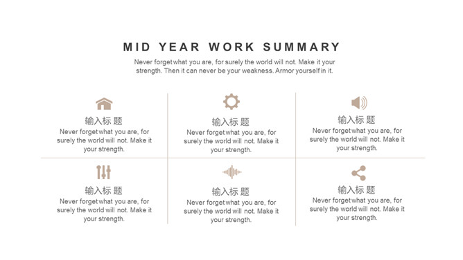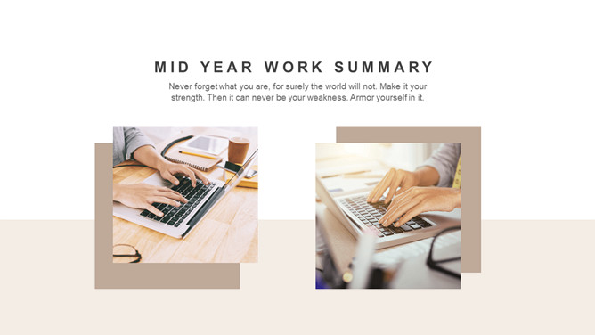 半年年中工作总结PPT模板。一套半年工作总结汇报幻灯片模板,淡雅浅棕色配色,简约设计,动态播放效果。