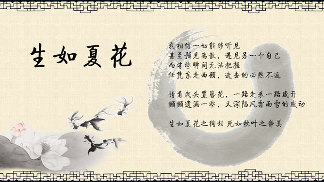 古典中国画水墨画卷轴PPT模板。一套古典中国风幻灯片模板,水墨画卷轴效果设计,使用字体: