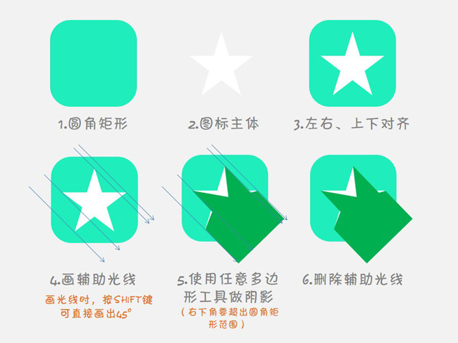 PPT制作平行光长阴影效果技巧。长阴影是时下流行的扁平化设计效果,本教程教你通过辅助光线,使用任意多边形工具制作长阴影。作者:@只为设计。